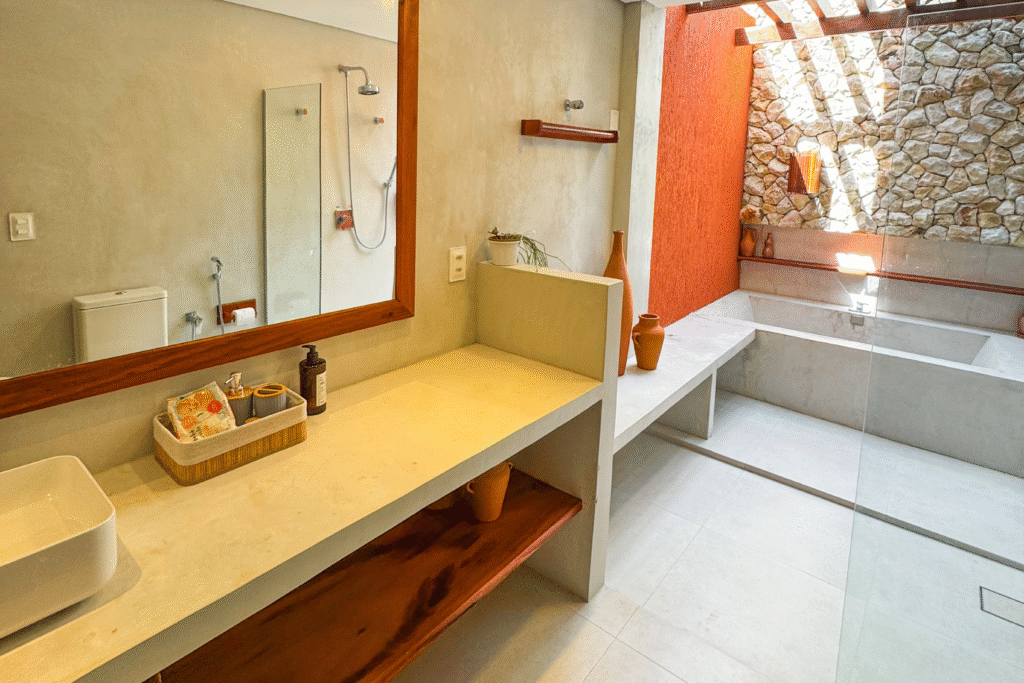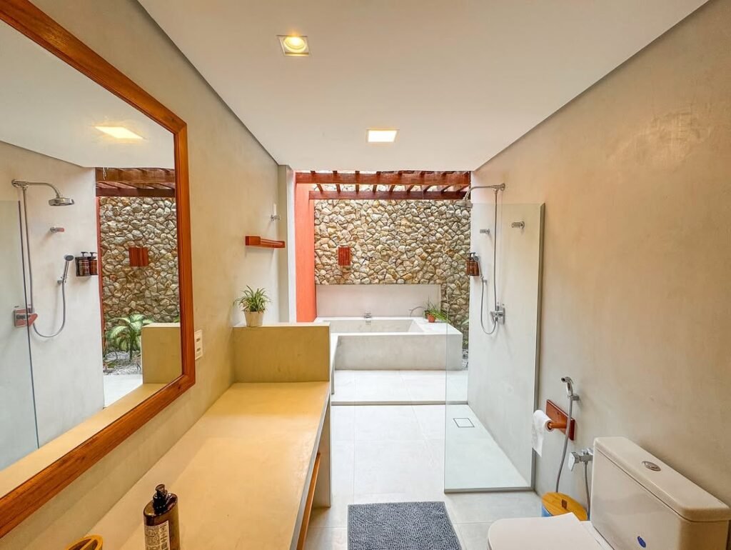 A Suíte Essência é o coração da experiência na Villa Maracujá de Icaraizinho. Seu grande diferencial é a banheira de imersão, que proporciona momentos de relaxamento únicos, perfeitos para casais que buscam aconchego e sofisticação. Com amplo espaço e cada detalhe pensado para o bem-estar, o ambiente convida ao contato com a natureza e ao prazer de viver o essencial.